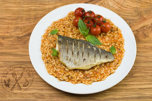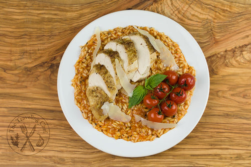 Local Elmira's Own Cherry Tomatoes, Basil, 30 month aged Parmesan and your choice of either T and J's Sea Bream which is tender and light in flavour which pairs perfectly with this tomato risotto, or Chicken Breast.